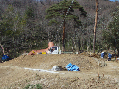 この日は,道路から公園への小路にコンクリートを打つ作業を行っていた.