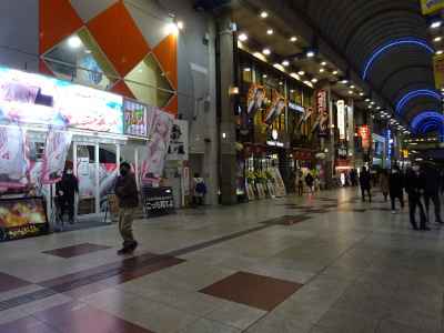 on Nakake Street. Many groups of people went in and out Izakaya bars around