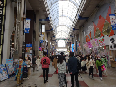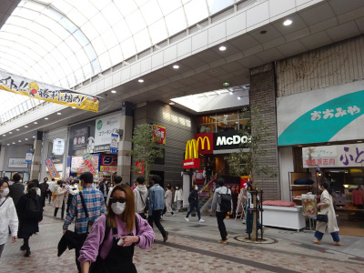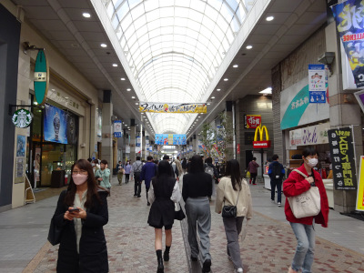 Many people walk around Fujisaki Department store, too. Because a preferential