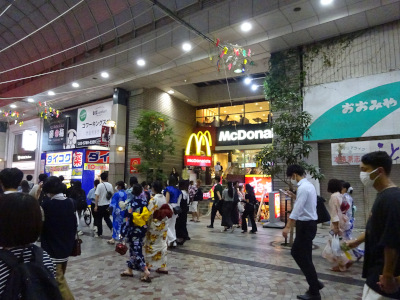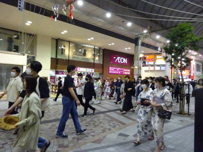 Many people walk around Fujisaki Department store, too. Unusually on Friday
