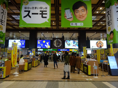 of people were in the concourse of Sendai Station. A market event where