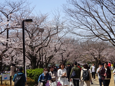 Cherry blossoms in Yoyogi Park were fully bloomed. Many people came to this