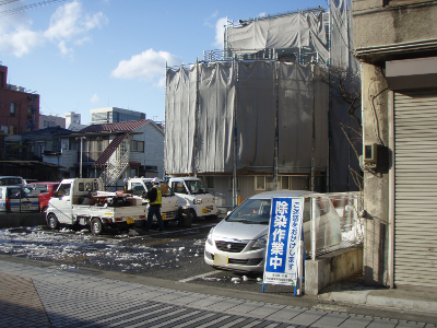 Bunka Street is one of the bar street in Fukushima City. On the day just 3 years after the quake, decontamination work has been doing at this street.