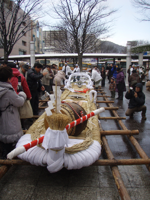 at dawn) Festival, the big sandal dedicated to Haguro Shinto shrine (located