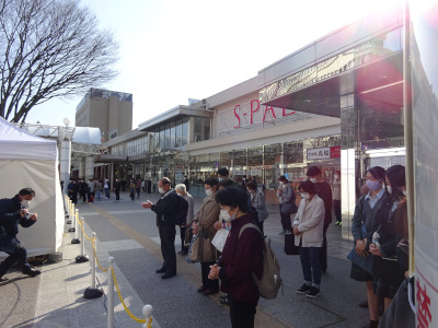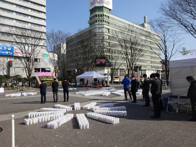 Even during the silent pray, a huge display installed at the wall of ex-Nakago Department Store was broadcasting the commercial short videos.