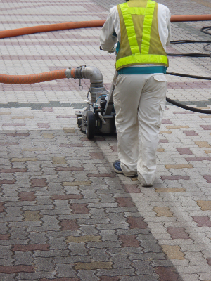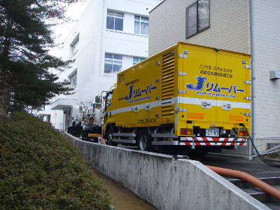 Decontamination work using a high pressure water jet remover system called