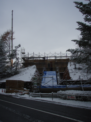 In the first snow coverage of this year, construction of a building for