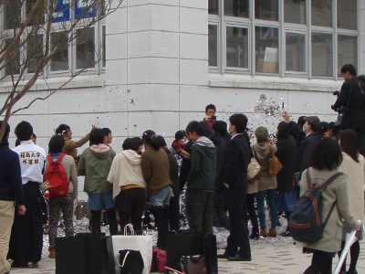 The commencement ceremony was held at this day. This was 2nd time after the quake: the commencement ceremony was cancelled at 2011, just after the quake.