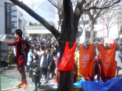 the grads coming out from the gymnasium where the ceremony was held. This was