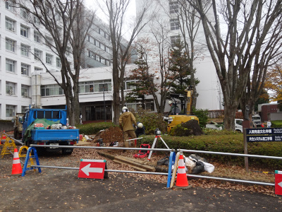 Pipework replacement was underway in front of the faculty of Symbiotic