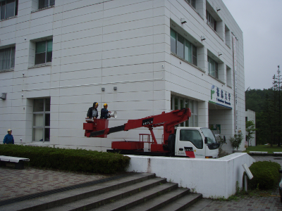 Loudspeakers for the emergency information were being set on the wall of the