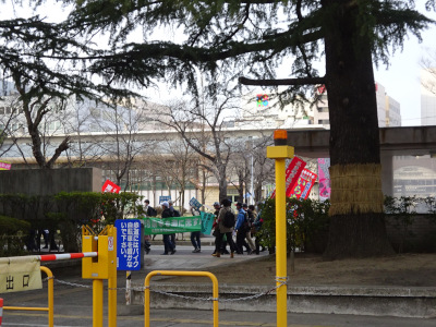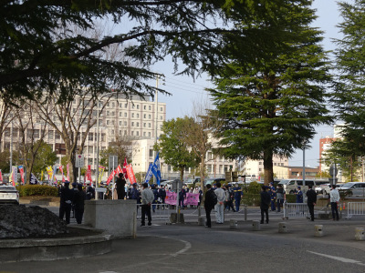 The demonstration parade of the leftist came to the Fukushima prefectural office.