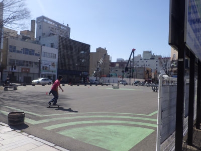 On a very warm sunny day, several young people were exercising skateboard at the Machinaka Square.