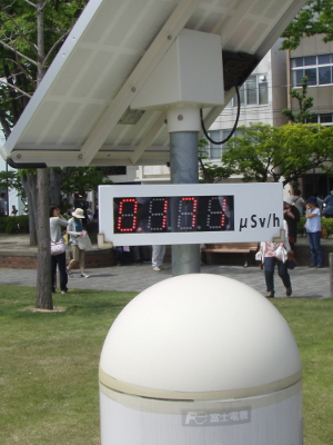 The monitoring post (right photo) shows that the radiation level of the