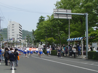 Marching bands of elementary schools paraded a street in front of the Shinhama
