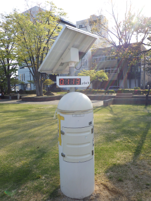 The monitoring post shows that the radiation level of the day was 0.113 μSv/h.