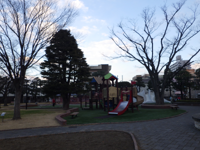 On a cold winter day, children were playing at the park cheerfully.