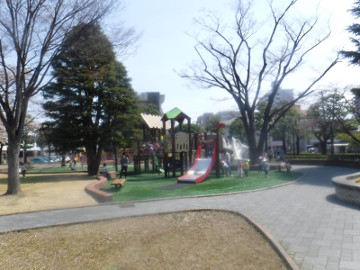 On a warm spring day, so many children were playing at this park so cheerfully.