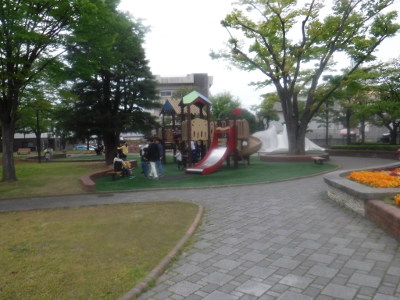 On a cludy day, about 15 children were playing at the Shinhama Park.