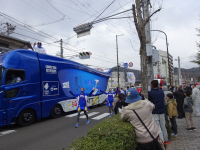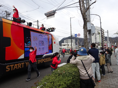 Just before a runner of the Olympic Torch Relay came, sponsors of Tokyo