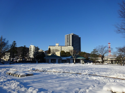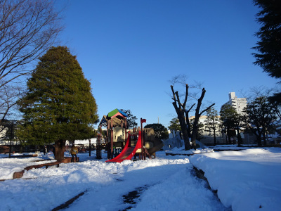 While snow remained, some children, from small child to high school students, were playing in the Shinhama Park.