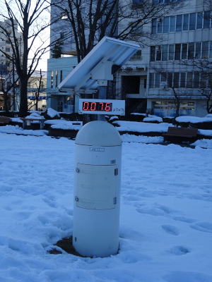 The monitoring post at this park showed 0.076 μSv/h. (right picture).