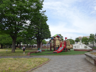 Even though the weather was extremely hot in June, around 10 children were playing cheerfully in Shinhama Park.