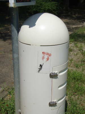 Someone put a sticker on the monitoring post: the red mark is the corporate