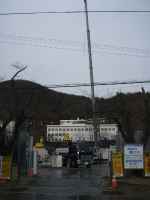 On this rainy day, the container of the radioactive contmintion were being covered with clean soil at the temporary strage site for raioactive contamination.