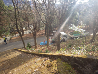 When the sounds of weeders stopped, I could hear the sound of Kagura broadcasted at the Gokoku Shrine