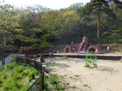 So many families with their children visited the Mt. Shinobu park. More than
