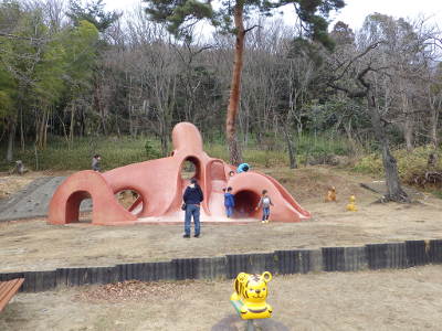 Around 5 children were playing cheerfully at the Mt. Shinobu park.
