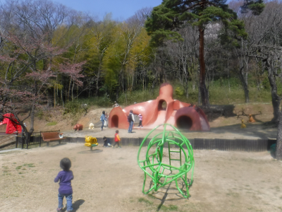 On a very warm spring day, many children were playing at the Mt. Shinobu
