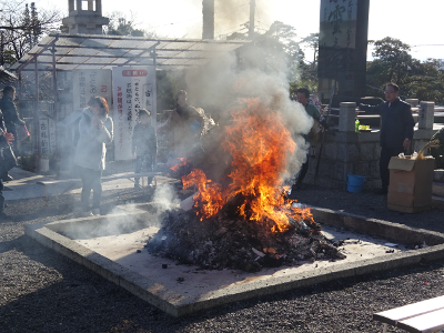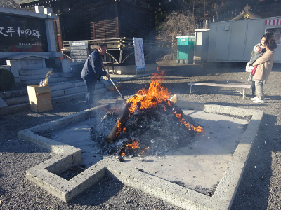 Don-do Yaki festival was held at Gokoku Shrine as usual. Don-do Yaki festival