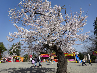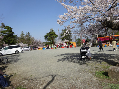 At the parking area of Mt. Shinobu where the cherry blossoms were fully bloomed,