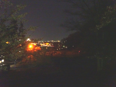 Kagura Music broadcasted in the Gokoku shrine next to the park could be heard.