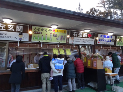if you buy a wooden mascot Uso bird (a Japanese bullfinch), the mascot will