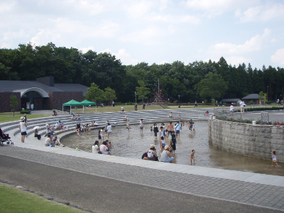 とても暑かったこの日,四季の里の池では,大勢の子供たちが水浴びを楽しんでいた.