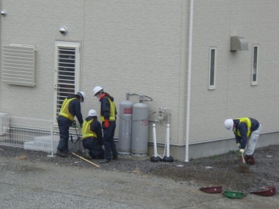 Decontamination works at the houses next to my apartment began. The sound was