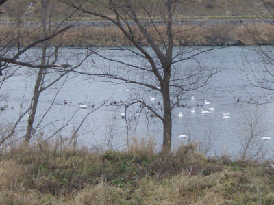 Around 50 swans flew to the Abukuma river near residential area of Watari.