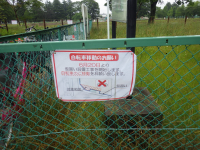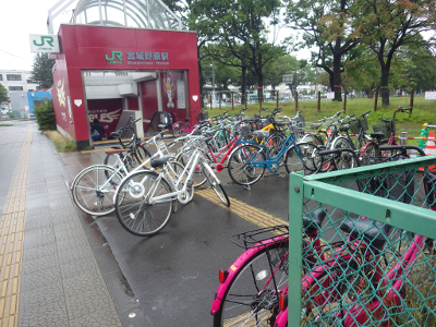 工事の事業者がフェンスに貼った掲示(写真右)をよく見ると,現在自転車が駐輪されている位置は,駐輪禁止の範囲に含まれていない。ということは,今回の問題は,こういう掲示物を作った事業者及び工事の発注元である仙台医療センターにも問題があると言わざるを得ないようだ。
