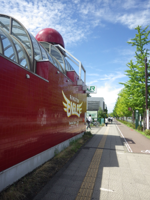 に引き続き,この日も,点字ブロックの上に支柱が置かれたテープの前に駐輪するものがおり,点字ブロックの使用と言う観点からは,ますます悪い状況となっている。