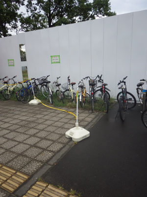 駐輪禁止を示すテープを張るための支柱の位置は,今日は,ずいぶん点字ブロックから離されていた。この位置であれば,点字ブロックの上に自転車さえ置かれていなければ,点字ブロックの利用に支障はない。支柱をこの位置に置いた上で,いかに,点字ブロックの上に自転車を置かせないようにするかが,この場所の管理者の腕の見せ所だ。