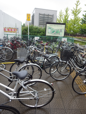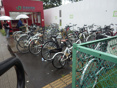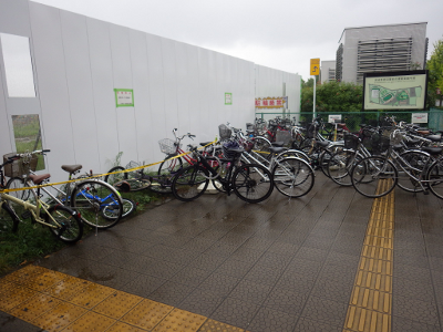 この日は朝から雨が降っていたためか,違法自転車の数は,いつもより少し少ないように見える。