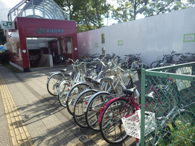 違法駐輪禁止を知らせるテープを張るための支柱の位置は,この日も,ここのところの定位置である。違法駐輪の自転車を撤去するなど,思い切った対策をしない限り,膠着状態が続きそうだ。JR東日本と宮城県には,そろそろ,問題解決に向けた次の一手を考えていただきたいものだ。