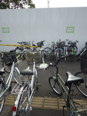 この日の宮城野原駅前の違法駐輪の自転車は,前日と同じ位の数だ。点字ブロックの上に置かれた自転車の数も,前日と変わらない。2016年度後期に入って,どちらもこれ位の数に落ち着いたのかもしれない。