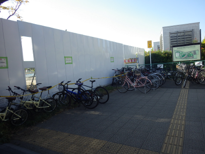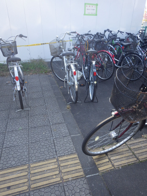 に指摘したとおり,このテープが結界となってしまっているようだ。このように捉えられてしまうと,点字ブロックの上の自転車が減ることは期待できない。