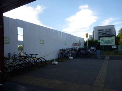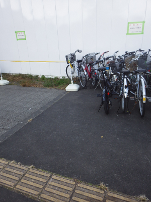 駐輪禁止であることを知らせるテープを張る支柱は,いつも通りの位置に置かれている。このテープが結界となり,壁際の一部に自転車が置かれていない空間ができているのも,いつも通りだ。