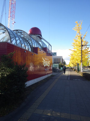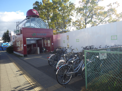 駐輪禁止であることを知らせるテープを張る支柱は,前日と同様に位置である。そして,このテープはこの日も見事に結界を作り上げていた。その結果として,駅から離れた側に,集中的に自転車が置かれる状況となっている。晴眼者の駅の利用という観点からは,駅前が広く空いているに越したことはないので,よい対策なのかもしれない。しかし,このように自転車が置かれた結果,点字ブロック利用にとって邪魔な自転車の数は,増えているように見える。したがって,ここでの一番の問題である「点字ブロックが利用できない」ということに対しては,対策になっているどころか,逆効果であると評せざるを得ない。JRの担当者には,テープの張り方の再考をお願いしたい。