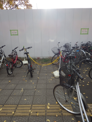 この日,自転車にまたがり,ここに停めるか否か思案しているように見えた人が1名いたが,このページへの掲載用の写真を取り始めたら,停めることを諦めたのか,駐輪場のある方向に自転車をこぎ出した。